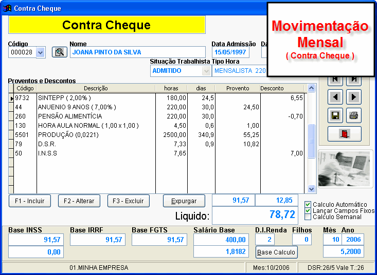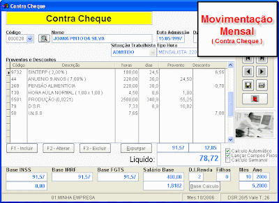 f) sobre este volumoso salário de R$ 850,00 há o desconto da previdência de 11%, mais o desconto do Ipsemg - que até ontem era compulsório -, mais as contribuições sindicais. O que restou como salário líquido, que é aquele valor que o trabalhador bota a mão no dia do pagamento, é a expressiva quantia de R$ 720,55,