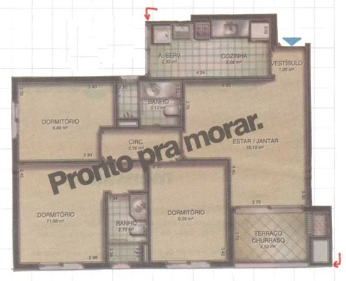 Modelo de Planta Baixa com 2 quartos sala e cozinha