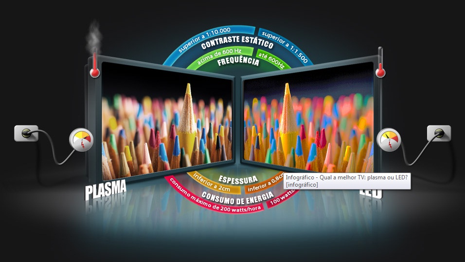 Contraste Estático: Uma TV de Plasma possui em suas configurações o contraste estático que é superior a 1:10.000, já uma TV de LED possui contraste estático de até 1:1.500 ou seja a Plasma ganha neste quesito do LED, porém vamos a outros aspectos que com certeza ajudarão você a se decidir por qual comprar.