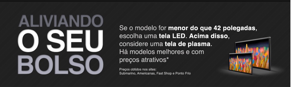 Custo e Benfício: Se o modelo for menor que 42 polegadas escolha uma TV de LEd. Se o modelo for acima disso seria melhor comprar uma tv de Plasma.