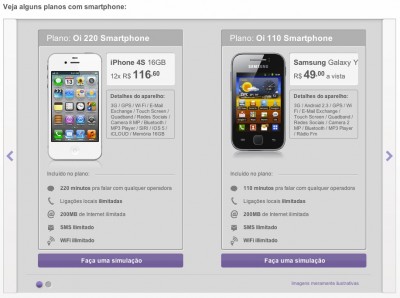 O simulador de planos da Oi traz as duas opções. Escolha o celular e você vê a lista de planos Oi Smartphone e descontos correspondentes, que variam de R$350 a R$1.500. Se você não quer a fidelização – nem o desconto – clique em “Não quero desconto” para ver os planos Oi Conta. O valor do aparelho é pago em até 12x no cartão de crédito; o valor do plano, por sua vez, é cobrado via boleto.
